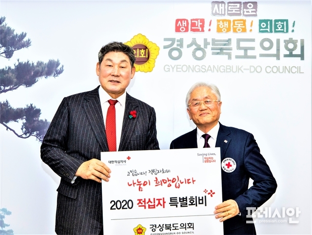 경상북도의회 장경식 의장은 24일 집무실에서 2020년 적십자 특별회비를 전달하며, 연말연시 나눔를 실천했다.