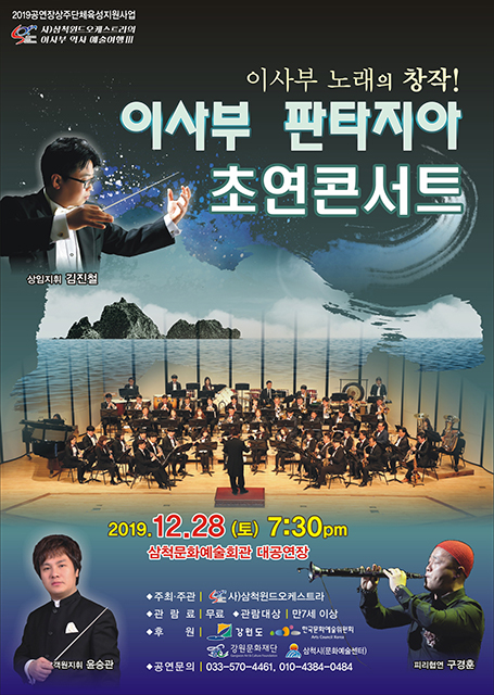 삼척시가 2019년 공연장 상주단체육성지원사업의 일환으로 오는 28일 오후 7시 30분 삼척문화예술회관 대공연장에서 ‘이사부 판타지아 초연콘서트’를 개최한다.