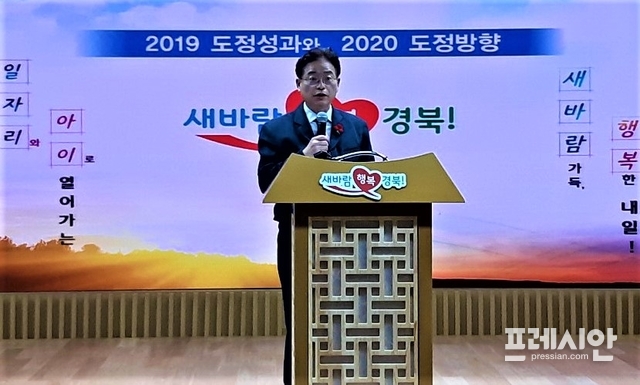 “올해 경북도정의 화두는 단연 변화와 혁신이었다”며 “변해야 산다는 말을 하루에도 수없이 되뇌이며 달려온 2019년이었다”고 밝히며 “변화를 통해 직원들에게 강조한 것은 도정을 자신의 일처럼 생각하고 적극적으로 행정을 해 달라는 것이었다”고 강조했다.