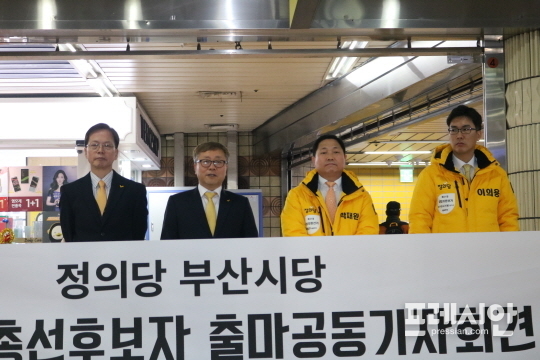 정의당 부산시당은 26일 오전 부산도시철도 1호선 시청역사에서 21대 총선 후보자 공동 출마기자회견을 열고 지지를 호소했다.