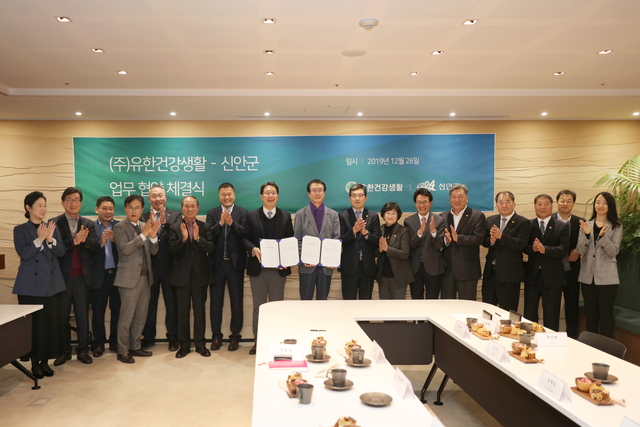 신안군은 꾸지뽕의 원물 수매부터 가공판매까지의 과정을 업무 협약을 통해 공동발전을 추구하고 소비시장에 대한 대응력을 높일 수 있도록 지난 26일 (주)유한건강생활 본사 회의실에서 ‘신안꾸지뽕 판로 확충 업무협약’을 체결하였다.