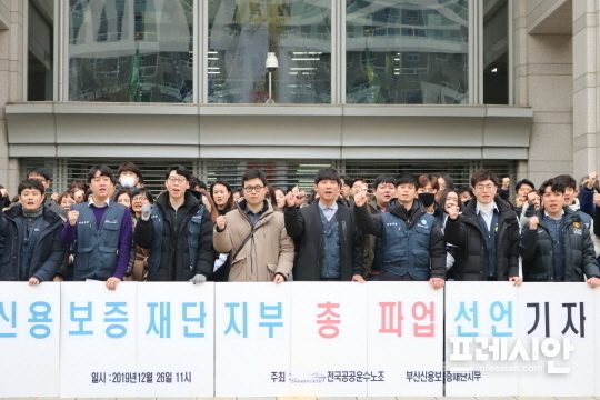 앞서 노조는 올해 임단협 협상이 결렬되자 "세 차례의 부산지방노동위원회 조정절차를 통해 노사 간 대화가 진행됐으나 꽉 막힌 권위의식으로 직원을 개돼지 취급하는 행태에 더 이상 부산신용보증재단노동조합은 인내심의 한계를 느끼며 조합원의 결의에 따라 합법적인 파업으로 생존권을 지켜가려 한다"며 지난 26일부터 총파업에 돌입했다.
