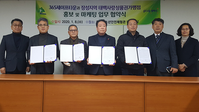 강원 태백시 한국청소년안전체험관은 최근 장성중앙시장조합(조합장 신수만), 장성동상가번영회(회장 방태준), 장성동주민자치위원회(위원장 윤경희)와 태백사랑상품권가맹점 홍보 및 마케팅 업무협약식을 가졌다고 10일 밝혔다.