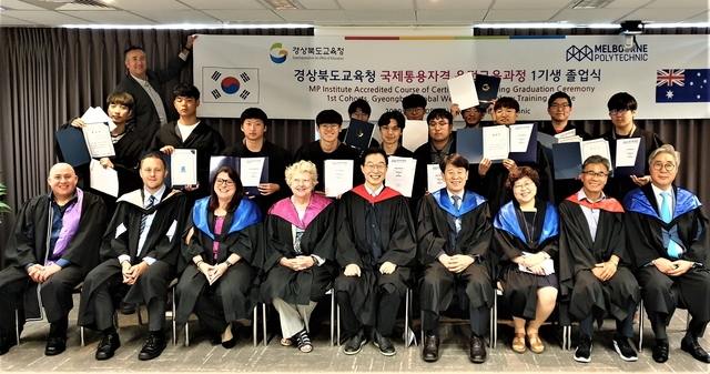 임종식 교육감은 멜버른 폴리테크닉대학교에서 국제통용자격 용접과정을 이수하고 있는 직업계 9개교 17명 학생에게 졸업장을 직접 수여했다.