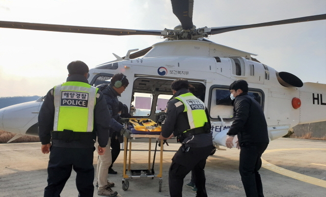 전남 완도해양경찰서(서장 박제수)는 지난 14일 완도군 보길도 인근해상에서 선상에서 줄 작업 중 다리가 절단된 환자를 닥터헬기 이용해 긴급 이송했다고 밝혔다.