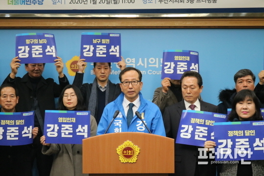 강준석 전 차관은 20일 오전 부산시의회 3층 브리핑룸에서 기자회견을 열고 "요동치는 국제정세와 점점 어려워지는 경제속에서 대한민국의 위상과 경제발전을 위해 희망찬 미래를 향한 부산지역의 발전을 위해, 남구 주민의 행복을 위한 정치를 하고자 이번 21대 총선 출마를 하게 됐다"고 밝혔다.