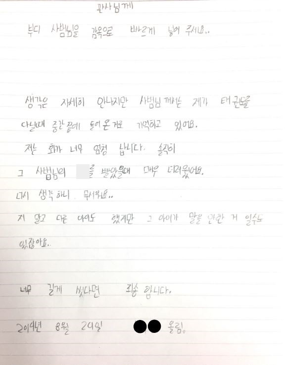B 양은 재판 과정에서 '사범님을 감옥에 넣어주세요. 저를 믿지 않고 오로지 나쁜 애라고 욕한 사람을 처벌해주세요'라는 편지를 판사에게 보내기까지 했다.