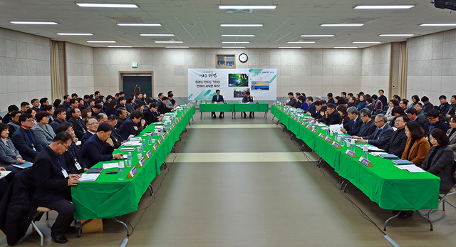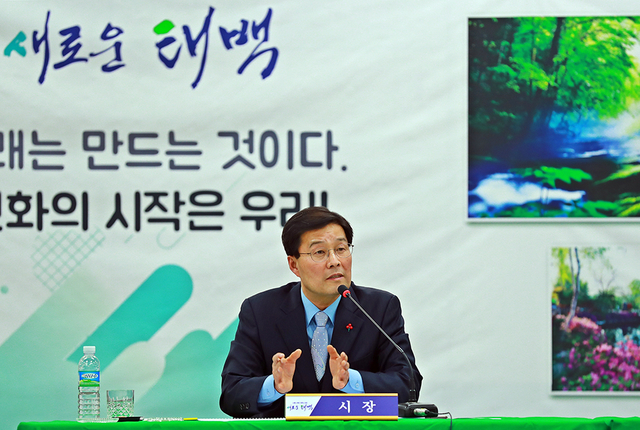▲20일 태백시청 대회의실에서 류태호 태백시장, 천부성 부시장을 비롯한 국장, 실과소동장 등이 참석한 가운데 2020 주요업무계획 보고회를 개최하고 있다. 이날 2020년 시정업무계획보고회는 2020년 시정업무계획과 현안사업 보고에 이어 협업부서간 사업토론과 공유 등이 진행됐다. ⓒ태백시
