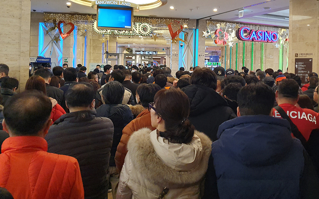 ▲강원랜드 카지노 입구에서 고객들이 입장을 기다리고 있는 모습. ⓒ프레시안