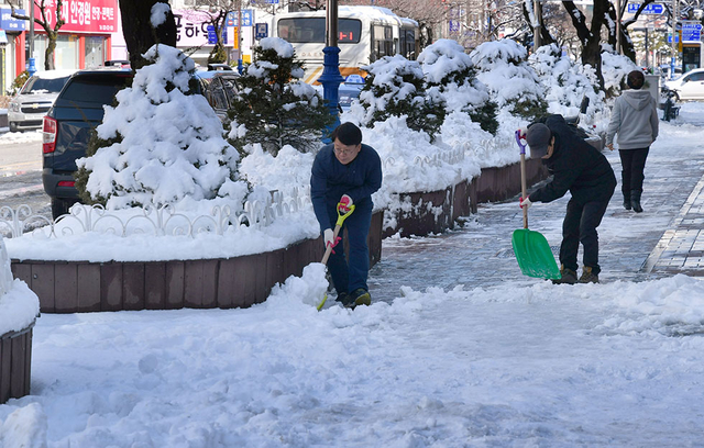 삼척시, 공무원들 휴일 제설작업 '구슬땀'
