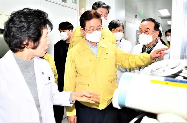 이철우 경북도지사가 신종 코로나바이러스 확산방지를 위해 지난 6일 포항의료원을 방문해 방역체계를 점검하고 지난 10일 구미와 문경의 중소기업 방문에 이어 12일 중국유학생에 대한 대책과 운수업계와 교통관련 현장점검에 나섰다.