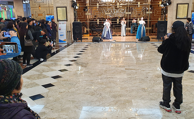 ▲매주 월요일 오전 하이원 그랜드호텔 4층 카지노 로비 특설무대에서 아리랑과 성악의 선율이 울려퍼지자 카지노 입장을 대기하는 고객들이 높은 호응도를 보이고 있다. ⓒ프레시안(홍춘봉)