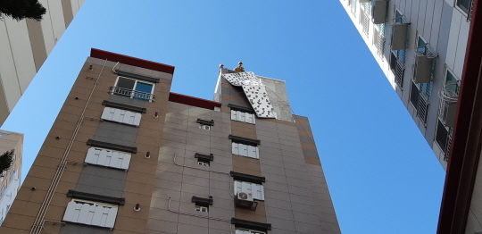 지난 17일 낮 12시 52분쯤 사상구의 한 공장에서 천장 판넬이 바람에 흔들려 출동한 구조대가 판넬을 제거했다.