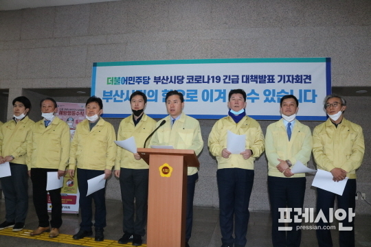 민주당 부산시당은 "국민적인 불안감을 조성하는 가짜뉴스 신고센터도 운영해 가짜뉴스를 차단하고 유포자에 대해서는 엄정한 법적 책임을 물을 것이다"며 "부·울·경 메가시티 비전위원회 차원에서 코로나19 비상대책특별위원회를 설치해 부산과 울산, 경남이 이번 사태에 공동 대응하도록 하겠다"고 말했다.