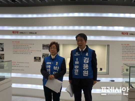 민주당 김용원·박영미 예비후보는 25일 오전 부산시의회 의원회관 앞에서 기자회견을 열고 "김용원 예비후보로 단일화에 합의했다"고 밝혔다.
