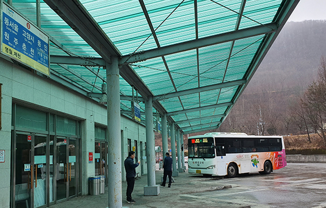 ▲카지노 임시휴장 연장에 이어 강원랜드 리조트의 모든 영업장까지 전면 휴장이 결정된 지난달 28일 정선군 고한에 위치한 시외버스터미널이 한산한 모습을 보이고 있다. 고한시외버스터미널은 하루 평균 3000~4000명 이상의 승객들이 이용할 정도로 유동인구가 많은 곳이었다. ⓒ프레시안(홍춘봉)