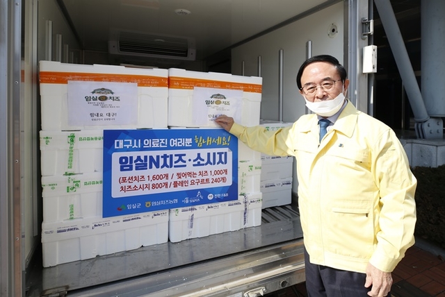 심민 임실군수는 이날 "코로나 환자를 돌보느라 대구의료진들이 너무 고생하고 있어 멀리서나마 힘을 보태고 싶다"며 2000만 원 상당의 군 대표특산품인 임실N치즈 관련 특산품을 보냈다.