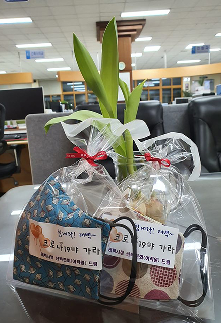 강원 태백시청 여직원 모임인 산목련회(회장 김해경)는 11일 관내 3개 요양원을 찾아 코로나19 예방을 위해 손수 제작한 면 마스크 120개를 전달해 귀감이 되고 있다 .