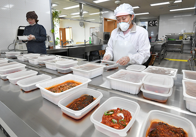 ▲정선군종합사회복지관에서 취약계층 어르신들을 위해 사랑의 밑반찬 나눔운동을 펼치고 있다. ⓒ정선군