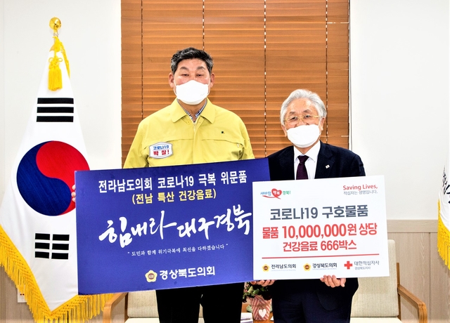 장경식 의장이 서울시의회에 지원요청해 박원순 서울시장이 적극 수용한 결과 지난 3일 2억 상당의 마스크 9만6600매를 보내왔고 전남도의회에서 17일 1000만원 상당의 지역특산품을 도의회를 통해 경북도 적십자사에 전달했다.
