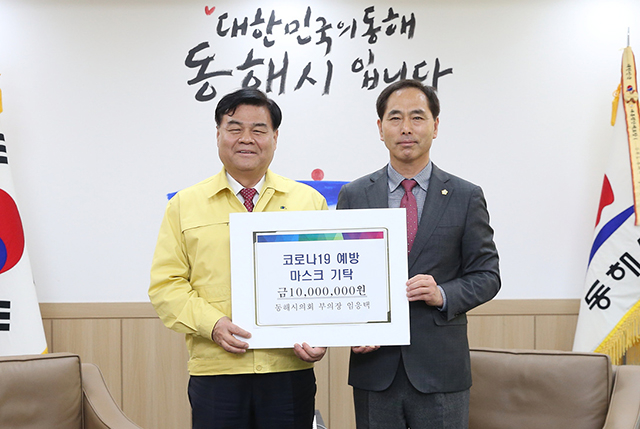 임응택 동해시의회 부의장이 20일 동해시청을 방문해 코로나19 예방을 위해 사용해 달라며 1000만 원 상당의 마스크를 기탁했다.