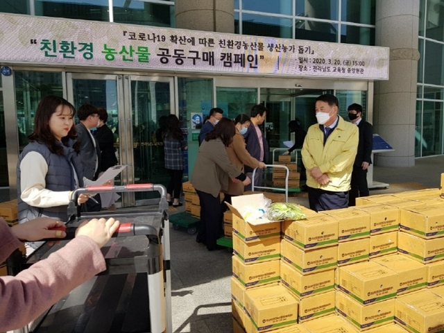전라남도교육청(교육감 장석웅)이 코로나19로 어려움을 겪고 있는 농가를 돕고, 친환경 농산물 소비를 촉진하기 위한 ‘친환경 농산물 공동구매 캠페인’에 동참했다.