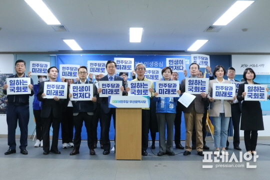 민주당 부산선대위는 24일 오전 11시 부산시당사에서 출범 기자회견을 열고 '민생이 먼저다, 일하는 국회로, 민주당과 미래로'는 슬로건을 공개했다.