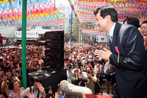 부처님오신날을 맞아 여야 서울시장 후보들이 '불심' 잡기에 나섰다. 한나라당 오세훈 후보는 21 오전 조계사 봉축 법요식에 참석한 후 법정 스님이 입적하기 전 머물렀던 성북구 길상사를 찾았고 한명숙 후보는 강남구 봉은사를 찾아 지지를 호소했다.
