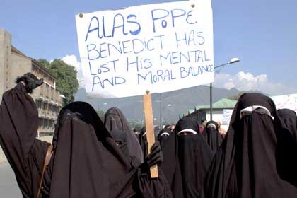 이라크 남부에서는 검은 깃발을 앞세운 시위대들이 교황의 형상을 불태우는 장면들이 목격되었으며, 무슬림이 많이 사는 인도 카슈미르에서는 3일째 폐타이어 등을 불태우며 주민들이 "교황을 타도하라"며 시위를 벌이고 있다.
