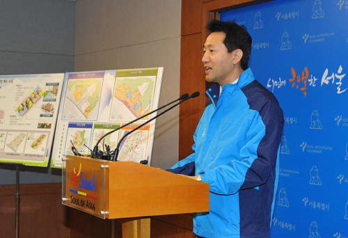 | ▲오세훈 서울시장이 14일 오전 서울시청에서 기자회견을 열어 시의 도시정비계획 방향 수정을 설명하고 있다. ⓒ서울시 제공 |