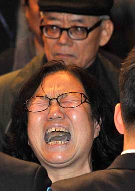 | ▲15일 오후 국회 의원회관 대회의실에서 이재오 특임장관과 한나라당 전여옥 의원의 공동주최로 열린 서민주거안정을 위한 신주택정책방향 법안 공청회에서 경기뉴타운 재개발반대연합회 한 회원이 뉴타운 재개발을 반대한다며 울부짖고 있다. ⓒ뉴시스 |