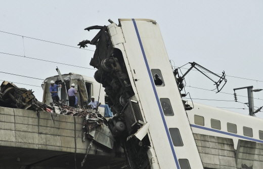 24일 <신화통신> 등에 따르면 23일 오후 8시34분 경 중국 저장(浙江)성 원저우(溫州) 솽위 마을에서 고속열차 둥처(動車) D3115호와 D301호가 추돌사고를 일으키고 탈선해 일부 객차가 20~30미터 높이의 고가 아래로 추락했다.