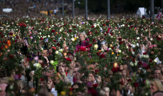 | ▲ 노르웨이에서 발생한 연쇄테러 희생자들을 기리기 위해 현지시각 25일 노르웨이 수도 오슬로 시청 밖에서 사람들이 장미를 들고 행진하고 있다. ⓒAP=연합뉴스 |