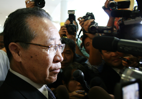 | ▲ 김계관 북한 외무성 제1부상이 26일 오후 미국 뉴욕 JFK 공항에 입국해 취재진의 질문에 답하고 있다. <연합뉴스>는 그가 수십명의 취재진들에게 둘러쌓여 있었지만 차분한 모습을 유지했다고 전했다. ⓒ연합뉴스 |