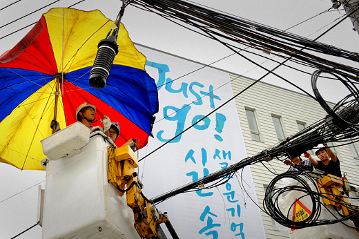 | ▲전선시설을 복구하는 사람들. ⓒ프레시안(손문상) |