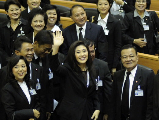 | ▲ 5일 태국 사상 첫 여성 총리로 선출된 잉락 친나왓(44)이 태국 방콕 국회의사당에서 손을 흔들고 있다. ⓒAP=연합뉴스 |