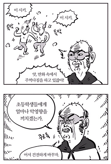 ▲<이말년씨리즈> 92화 '본격 건전한 만화' 내용의 일부. ⓒ네이버 웹툰 <이말년씨리즈>에서 캡처.