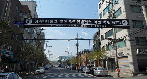 | ▲서울화력발전소(당인리발전소) 인근 주민들이 발전소 설비 지하화에 반대하는 현수막을 걸어놨다. ⓒ이봉수 제공 |