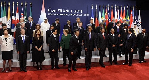 | ▲프랑스 칸에서 지난 3일 개막한 G20 정상회담에 참가한 각 국 정상들이 단체 사진 촬영을 준비하고 있다. G20 정상회담은 외환시장에 대한 규제 방안을 논의하는 자리이며, 한국 정부와 민간연구소에 따르면 450조 원 이상의 경제효과를 기대할 수 있는 논의의 장이기도 하다. ⓒ뉴시스 |