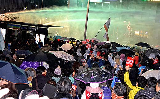 9시께 삼일로로 나온 시민들은 남대문세무서 앞에서 경찰과 대치했다. 경찰은 곧바로 물포를 쏘며 시민들의 강제해산을 시도했다. 그러나 상당수 경찰이 국회 앞에 대기중인 때문인지 강경진압에는 나서지 않는 모습이었다.