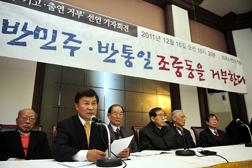 15일 오전 김원웅 전 국회의원, 김삼웅 전 독립기념관 관장, 함세웅 신부 등 각계 원로 20여 명은 서울 프레스센터에서 기자회견을 열어 "조중동은 민주주의의 상식을 지지하는 사람들에게 '불가촉의 존재'가 되어야 마땅하며, 민주주의의 바다에서 고립된 섬으로 잠시 남아있다 역사의 뒤안길로 사라져야 한다"고 출연 거부 이유를 밝혔다.