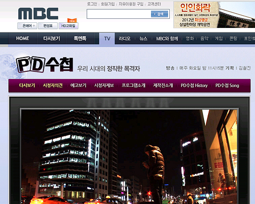 | ▲MBC의 간판 시사프로그램 <PD수첩>이 방송중단 파행을 맞고 있다. ⓒMBC 홈페이지 캡처 |