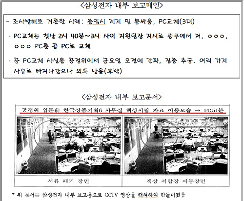 이처럼 출입이 지연돼 오후 3시 10분경에야 조사공무원들이 조사현장에 도착할 수 있었으나, 이미 사무실에는 김모 직원 혼자만이 남아있었다. 그 사이 삼성전자 무선사업부 박모 지원팀장(전무)의 지시로 삼성전자는 조사대상자료를 폐기하고 핵심 조사대상자들의 PC를 교체했다. 사실상 정부를 상대로 조직적인 범죄를 저지른 셈이다.