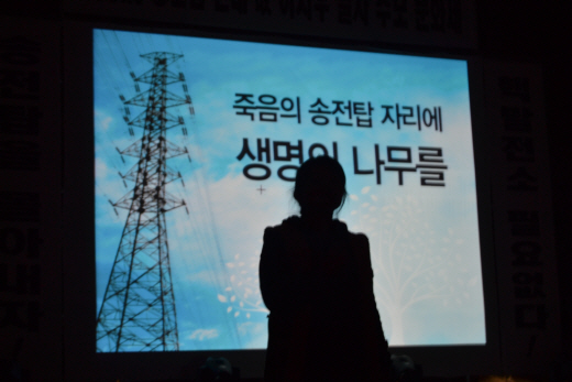첫 날 일정에서는 추모문화제, 신라면과 김치를 함께 먹으면 안 되는 이유와 스낵면에 밥을 말아먹으면 안 되는 이유에 대해 뮤지션들이 주도했던 진지한(?) 논의, 후쿠시마 취재를 두 차례나 다녀온 기자의 생생한 체험담을 곁들여 함께 했던 저녁식사를 마치고 곧바로 문화제가 열릴 강변 야외공연장으로 자리를 옮겼다. 바람이 찬 편이었지만 시민들이 많이 모여 있었는데, 유달리 할머니, 할아버지들이 많이 계셨던 게 인상적이었다. 인근 5개 시·군에 세워질 송전탑 중 40%가 넘는 69개가 밀양에 건설된다 하니 송전탑 건설이 지역사회에서 관심을 벗어날 리 없겠거니와 그 대부분은 할머니, 할아버지들이 평생을 바쳐온 생활의 터전이자 시민들에게 마음의 고향이 되는 곳을 파헤치고 지나는 탓이리라. 오랫동안 자연과 아이와 순수를 노래했던 '백창우와 굴렁쇠 아이들'의 노래나 송전탑 경과지 주민들이 직접 합창단을 조직해 부른 '아리랑', '흙에 살리라'와 같은 노래가 마음 깊은 곳에 달라붙고, 흥겹지만 바늘로 찌르는 듯한 느낌을 주었던 건 그들 앞에 놓인, 혹은 놓이게 될 아픈 삶의 노래를 날 것 그대로 들려준 까닭이 아니었을까? 주민들의 7년의 싸움을 기록한 다큐멘터리가 특히 아팠다. 여기저기서 눈물들을 훔친다. 도대체 이 나라는 어떻게 된 땅인가, 이런 생각만 자꾸 들었다. 저 힘없는 이들의 고통을 여기 오기 전까지 전연 모르고 있었던 나는, 우리는 또한 어떻게 된 인생들인가 하는 생각까지.