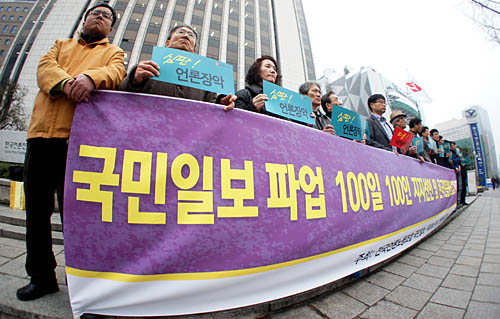 국민일보 노조는 지난해 12월 23일 오후 4시부터 총파업에 돌입했다. 한국 언론 역사상 파업 100일을 넘긴 건 지난 2001년 CBS 노조의 267일 파업이 유일하며, 오는 31일이 되면 국민일보 노조가 뒤이어 두 번째로 세 자릿수 파업일을 맞는다.