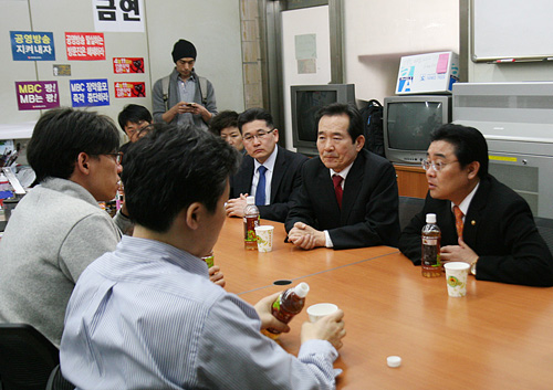 12일 전국언론노동조합 MBC본부(본부장 정영하)에 따르면 정세균, 전병헌 의원은 MBC 노조 사무실을 찾아 노조 집행부와 면담을 갖고 19대 국회에서 언론 노동자 파업 문제를 해결하겠다는 입장을 밝혔다.