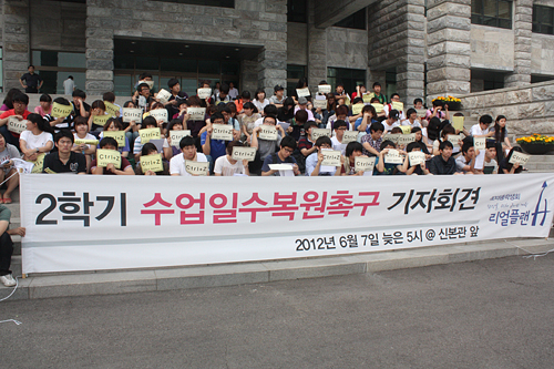 줄어든 수업일수로 인해 학생들이 받는 교육 서비스의 질도 떨어진 셈이다. 한양대 총학생회가 지난 3월 실시한 수업일수 단축 찬반 투표 결과, 투표에 응한 7689명(재학생의 50.36%) 중 5750명(74.80%)이 수업일수 단축에 반대했다. 그러나 학교 측은 여전히 학생들의 요구를 받아들이지 않고 있다.