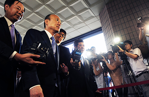 | ▲회사에 수천억대에 손실을 끼친 혐의로 불구속 기소된 한화그룹 김승연 회장이 16일 오전 서울서부중앙지방법원에서 열린 1심 선고공판에 출석하고 있다. ⓒ뉴시스 |