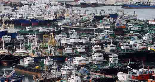| ▲볼라벤이 북상하고 있는 가운데 27일 오전 부산항 5부두에 피항온 선박들이 가득차 있다. ⓒ뉴시스 |
