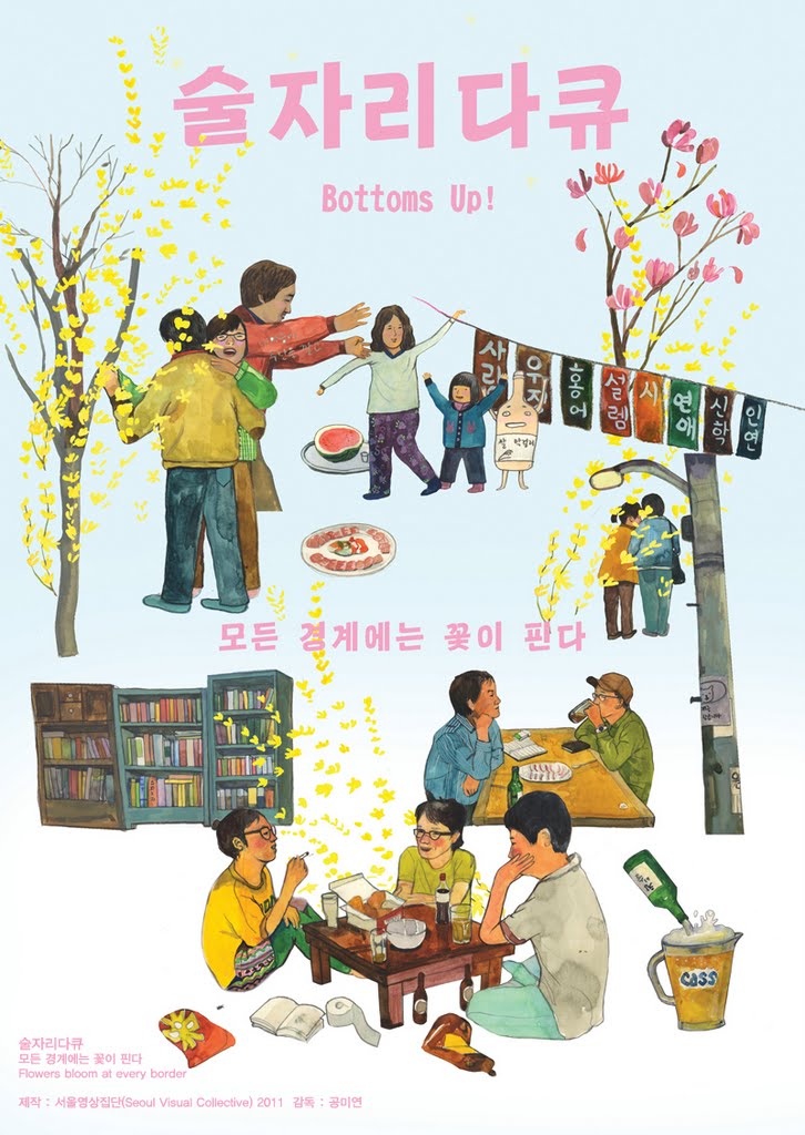 공미연 감독의 다큐멘터리 <술자리다큐>(87분 / HD / 2011년 / 서울영상집단 제작)는 이처럼 아슬아슬한 경계를 넘나든다. 감히 넘볼 수 없는 종교의 경계를 술 한 잔으로 가볍게 넘기도 하고, '누가 먼저 옆구리 콕콕 찔렀나'라며 티격태격하기 마련인 남녀의 취중진담도 물에 물 탄 듯, 술에 술 탄 듯 넘겨 버린다.